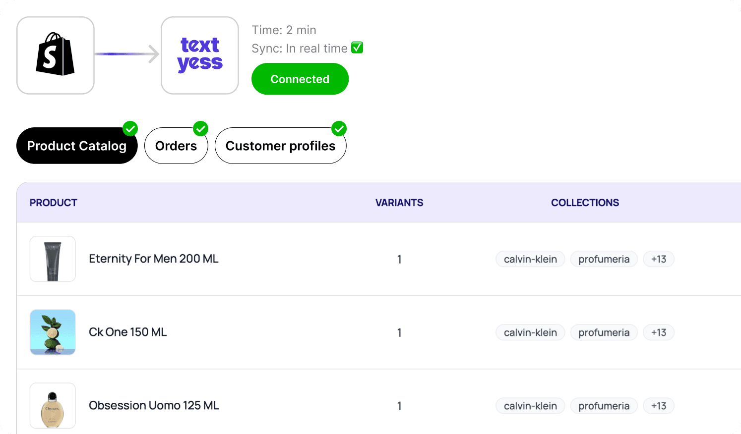 Once again, with TextYess the integration is in real time, with precise sync and custom options. For example, if you want to remove an article from your catalog or change its price, the AI Agent will learn it automatically.