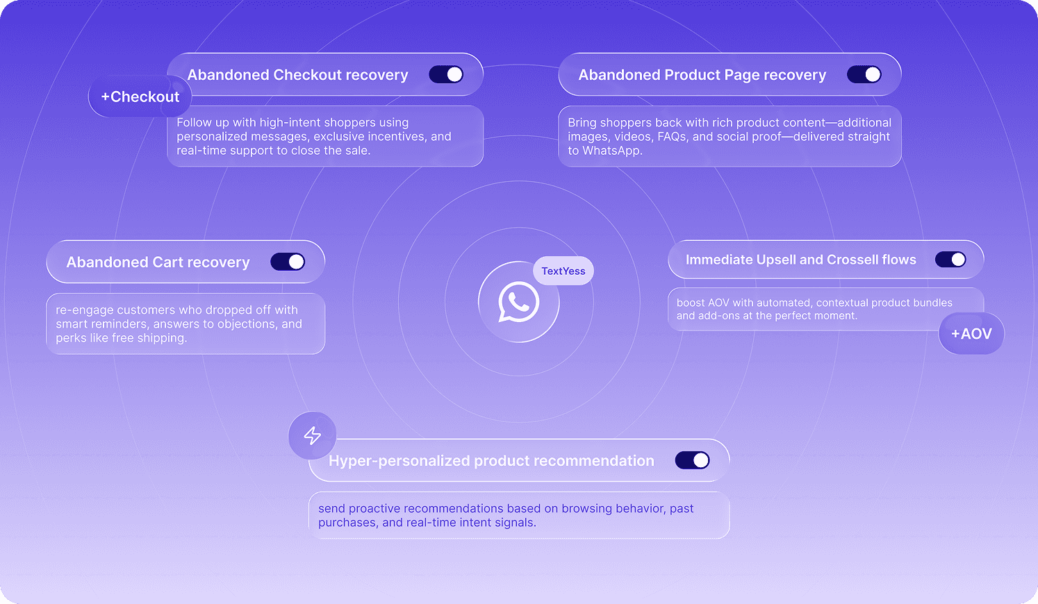 The best way to get your WhatsApp bubble? We're biased, but it's most definitely TextYess, so you can attach automations and convert conversations into revenue right away.